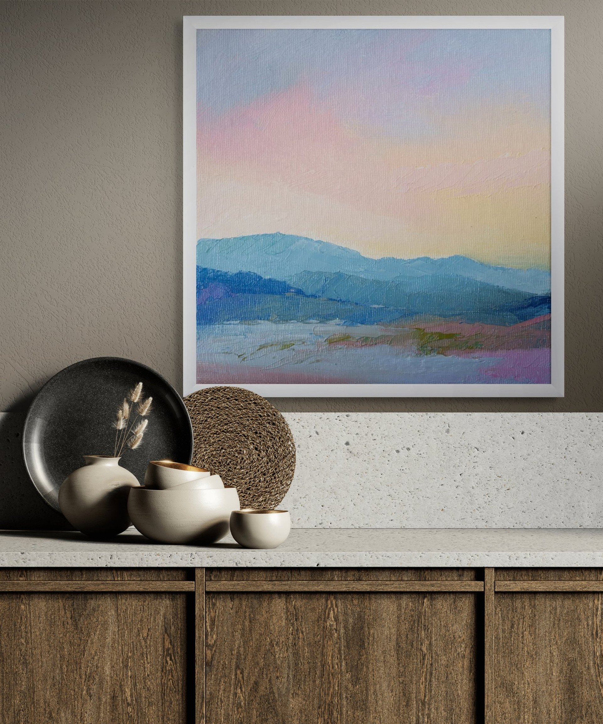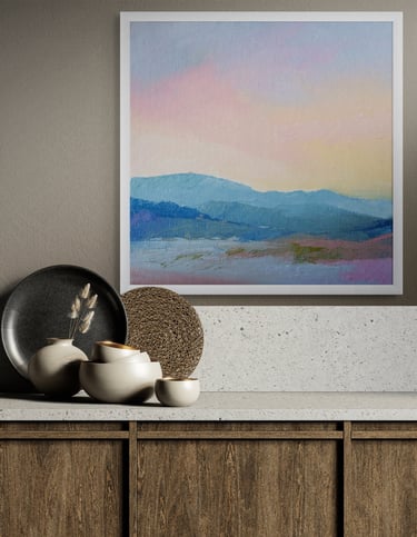 My work is fundamentally a celebration of color and of the oil painting medium itself. I love exploring color harmonies and leveraging our relative perception of color to make an accent color really sing. The softness of oil paints is well suited to creating dreamy atmospheric abstractions of landscapes, and I fully embrace that quality.